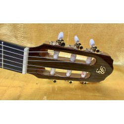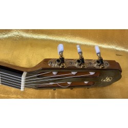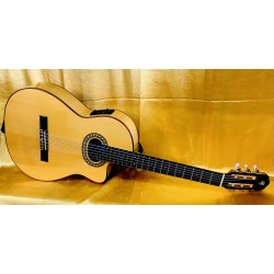 Made from a solid spruce top and maple back and sides, the Prudencio Saez model 59 also incorporates a truss rod inside the neck, enabling the player to adjust it to their needs. The sound is delightfully full-bodied and well balanced. Incorporates the Fishman Prefix-Pro-Blend pickup and preamp system.